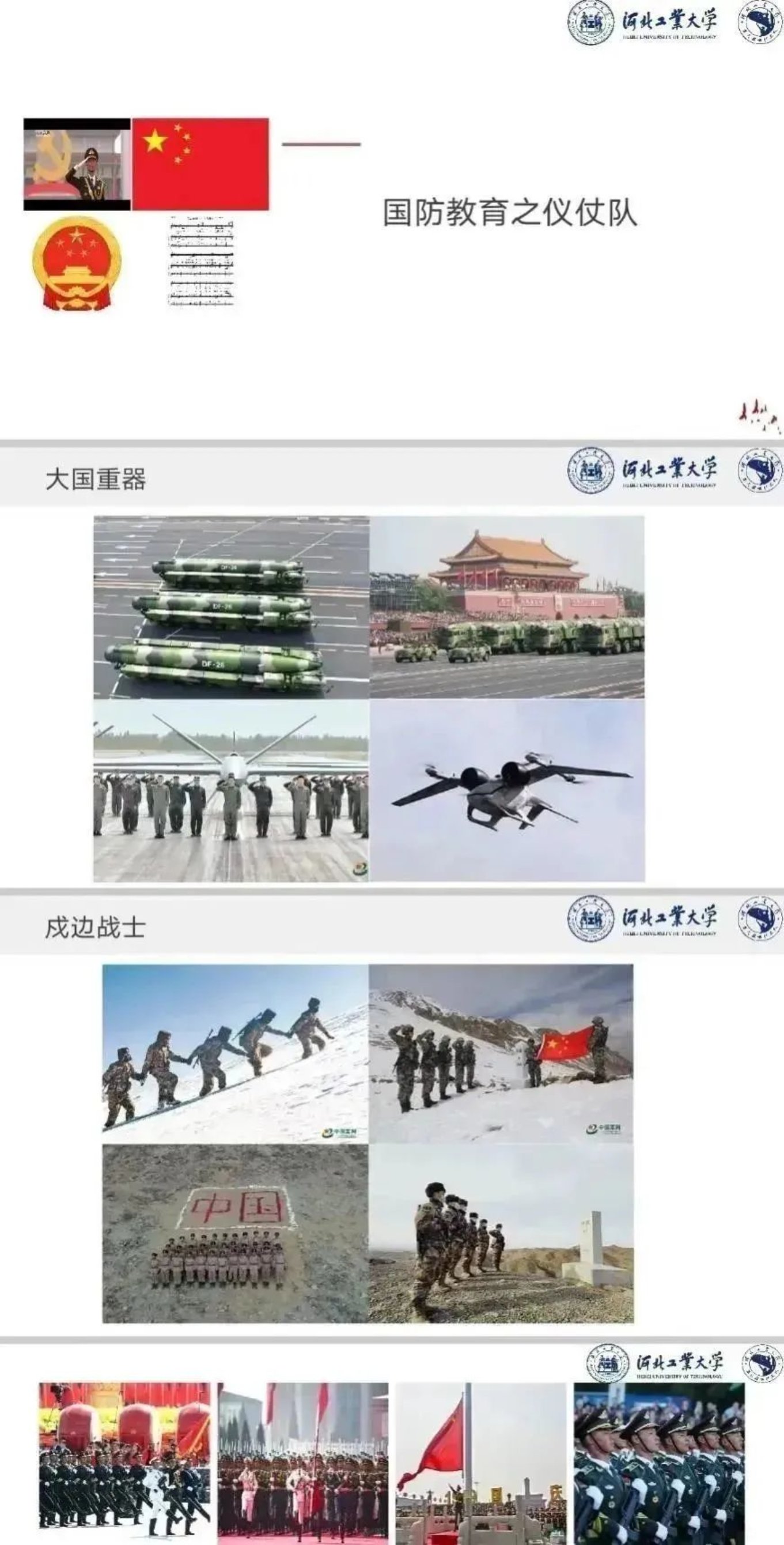 “少小虽非投笔吏,论功还欲请长缨。”国防教育不仅仅是口头教育,更要渗透到实践中去。同学们正值青春少年时,朝气蓬勃,意气风发,更应担起时代重任,为国防安全献出自己的一份力量。