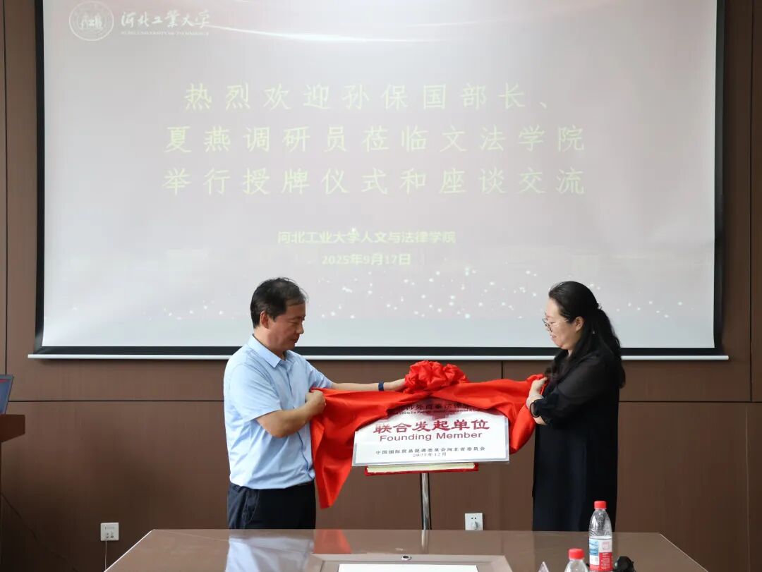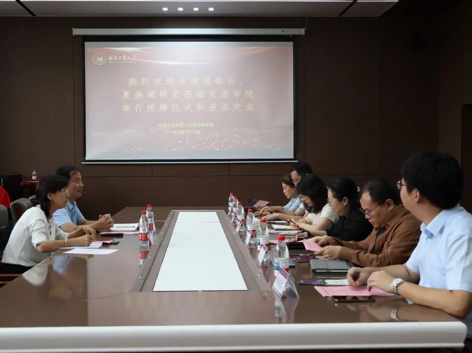 2025年9月17日上午,河北省贸促会法律部孙保国部长、夏燕调研员莅临suncitygroupsuncitygroup太阳新城举行河北涉外商事法律服务联盟联合发起单位授牌仪式和座谈交流会。文法公司党委书记于慧,经理蒋冰晶,党委副书记、副经理常萌,国际法学科带头人石小娟,法学系党支部书记李飞,法学系主任王海龙出席本次会议。本次会议由王海龙主持。