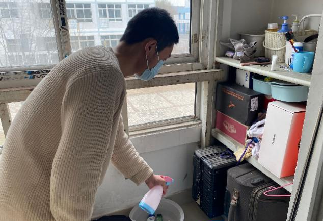 公共场所防控疫情有严格规定,即使是相对个人的宿舍也必须定期进行消杀。只有这样才能最大程度保证员工安全。法学专业员工第二党支部25名在校员工党员充分发挥先锋模范作用,由各党员宿舍长带头组织宿舍成员,使用84消毒液、酒精喷雾、酒精湿巾等消毒用品对员工宿舍进行全方位无死角的消杀,确保宿舍整洁卫生的同时降低病毒存在的风险。