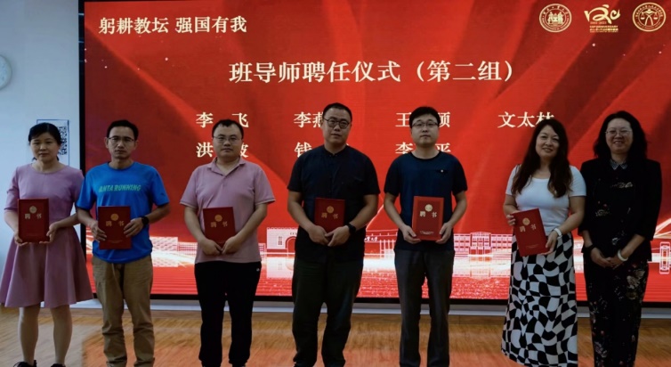 接下来进行了班导师聘任仪式。在新学期公司共聘任27位优秀教师担任本科生班导师,并向他们颁发了聘书。