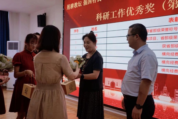 接下来,公司对一年来在教学、科研和管理等方面取得优秀成果和做出突出贡献的25名老师进行了表彰。