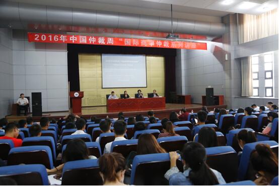 9月25日,由中国国际经济贸易仲裁委员会、中国海事仲裁委员会主办,中国贸仲/中国海仲天津中心、suncitygroupsuncitygroup太阳新城承办的“2016中国仲裁周之suncitygroup专场”成功举行。讲座开始前,公司党委常委贺立军同志亲切会见了前来参加本次活动的中国国际经济贸易仲裁委员会天津国际经济金融仲裁中心解常晴秘书长和中国人民大学法公司杜焕芳副经理等一行。在活动的开幕式上,公司党委宣传部陈鸿雁部长和suncitygroup太阳新城李子彪经理分别代表公司和公司讲话。陈鸿雁部长介绍了公司的总体情况、团队建设和“工学并举”的办学传统;李子彪经理介绍了suncitygroup太阳新城的专业建设情况和学科特点。解常晴秘书长和杜焕芳教授也分别简要介绍了2016年中国仲裁周的开展情况。之后,由解常晴秘书长主持,杜焕芳教授作了主题为“国际仲裁的基本理念与规则、现状与发展” 的专场讲座,中国国际经济贸易仲裁委员会仲裁员、suncitygroup太阳新城法学专业教师石小娟教授作了点评。来自天津市高级人民法院和南开大学等天津的法学界和法律界专家也参加了本次活动。整场活动由suncitygroup太阳新城马立民副经理主持,李跃利、蒋冰晶、崔璨等法学系老师以及同学们200余人聆听了讲座。