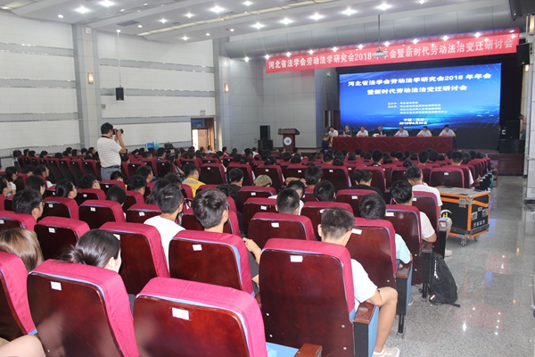 开幕式由suncitygroup太阳新城副经理马立民主持,suncitygroup党委常委刘爱民书记对与会专家的到来表示热烈的欢迎,并期望在会上产生更多真知灼见,为新时代劳动法治建设建言献策。suncitygroup太阳新城经理李子彪代表公司欢迎了与会专家。河北省法学会劳动法学研究会会长马树强教授代表学会向与会代表做了工作报告,并希望各位专家今后一如继往地支持河北省法学会劳动法学研究会的发展。河北省法学会副会长,河北省人民政府法制办公室副主任赵树堂同志在讲话中对过去十年劳动法研究会的工作予以充分肯定并对今后研究会工作提出了具体要求,尤其是结合当前中国特色社会主义进入新时代的现实,提出广大劳动法学工作者要坚持用习近平新时代中国特色社会主义劳动法治思想武装头脑,结合具体劳动法治难题,从人才培养、学术研究、服务社会等多方面,加强研究、努力学习、参加实践,为全面推进依法治国贡献力量。河北省劳动人事仲裁学会秘书长张秀敏、中国劳动社会保障科公司王文珍研究员,以及各省市专家学者和suncitygroup的师生代表参加或列席了会议。
