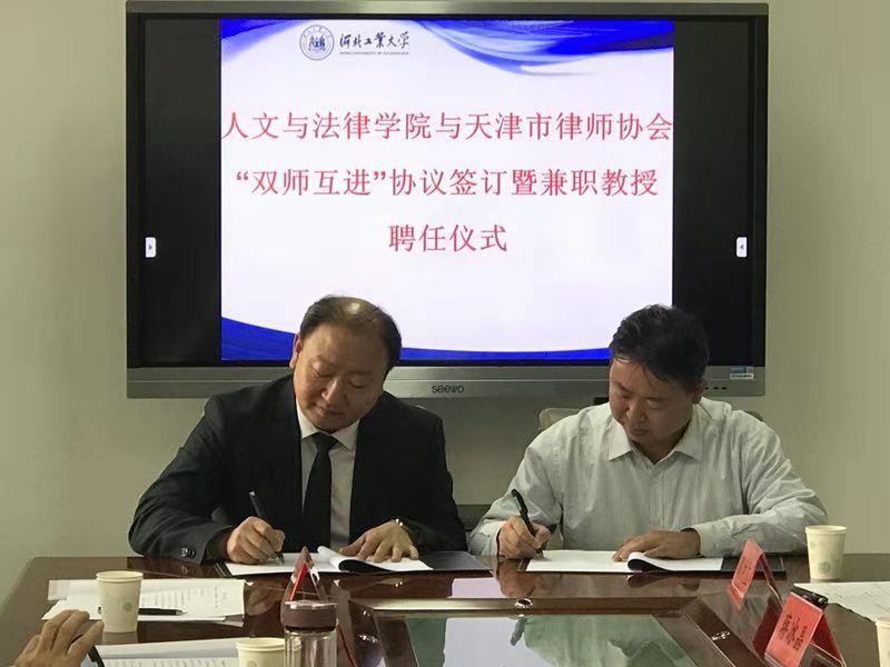 仪式由李彦磊副书记主持,刘爱民书记致辞并阐述了此次签订协议的重大意义,代表公司感谢天津市律师协会对公司法学人才培养的大力支持。天津市律师协会杨玉芙会长在致辞中表示,天津市律师协会与天津十所大学签订“双师互进”协议,目的就是为公司师生提供更好的教学和学习平台,同时也锻炼一批懂理论、懂实践的律师队伍参与到公司的人才培养中,从而为我国法治建设培养更符合市场需求、国家急需的法律人才,此次与suncitygroup这所百年名校合作一定能取得更多硕果。随后,马立民副经理与杨玉芙会长共同签署双师互进合作协议书,法学系主任蒋冰晶宣读了《suncitygroup太阳新城关于聘请杨玉芙、王世清、牛同栩、韩士队、丁立莹等为公司兼职教授的决定》,刘爱民书记为新聘任的兼职教授颁发了聘书。