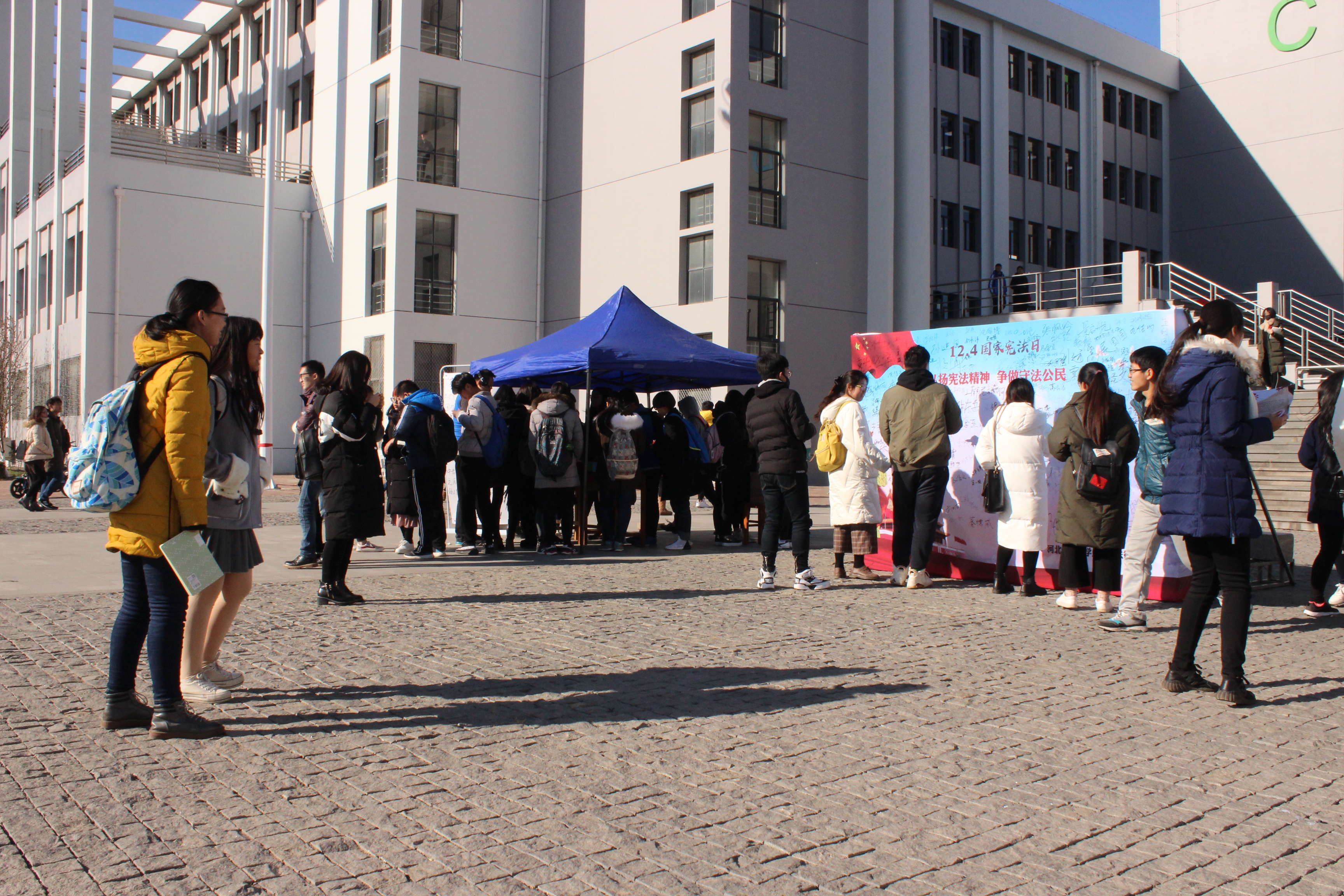 本次活动具有重要现实意义,吸引全校师生参与。为了活动的顺利开展,工作人员不辞辛劳,秉承着对宪法的崇高敬意和饱满热情,在凛冽的寒风中为大家服务。全校众多师生在签字板上签名支持,留下“弘扬宪法精神,争做守法公民”的铮铮誓言。此外,为了进一步宣扬宪法知识,设置宪法知识有奖问答环节,为答题成功的师生送上精美的纪念礼品,让大家在愉快的游戏中学习宪法知识。