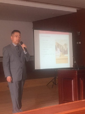 讲座由公司党委副书记李彦磊主持,公司党委宣传部部长陈鸿雁,研究生公司副经理白仲航,公司、公司教师代表,2014级、2015级、2016级汉语国际教育专业员工共计150余人参加了讲座。