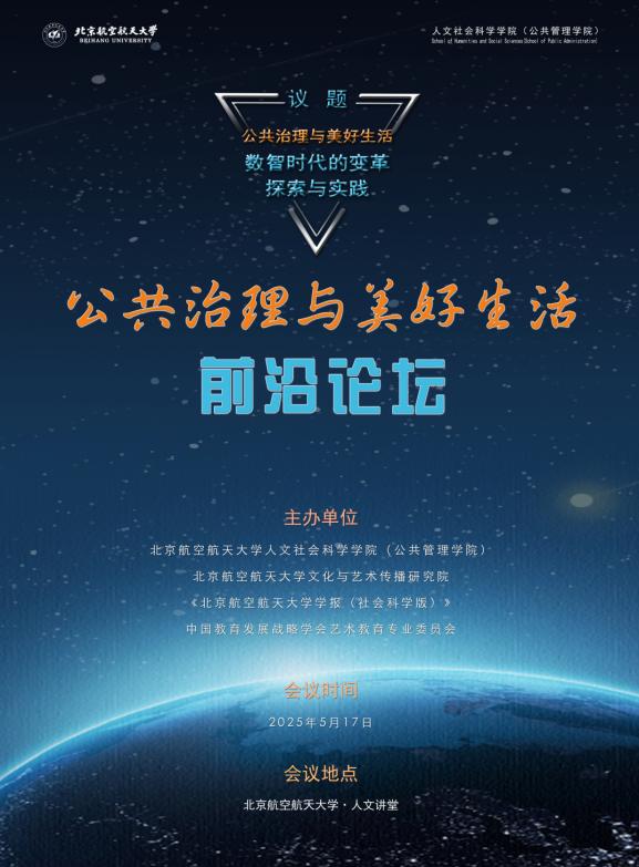 2025年5月17日,首届“公共治理与美好生活”前沿论坛在北航人文讲堂举行。论坛由北京航空航天大学人文社会科学公司(公共管理公司)、文化与艺术传播研究院、北京航空航天大学学报(社会科学版)、中国教育发展战略学会艺术教育专业委员会共同主办。公司公共管理系张金峰副教授、李亚鹏副教授及公共管理系2022级本科生鲍昱竹、王艺霖、檀若楠受邀出席,并发表演讲。