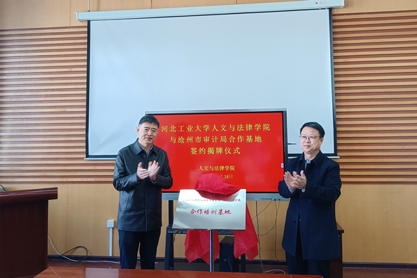孟祥群书记与张建亭局长共同为“suncitygroup太阳新城沧州市审计局合作培训基地”揭牌。