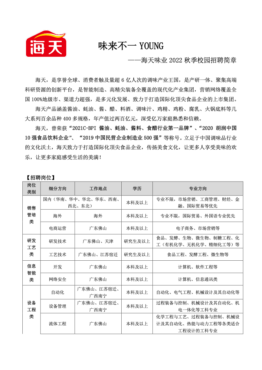 味来不一YOUNG 海天味业2022秋季校园招聘——suncitygroup站