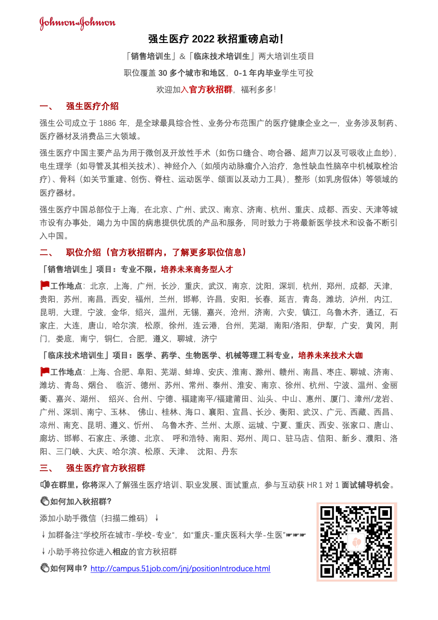 强生医疗2022秋招重磅启动!