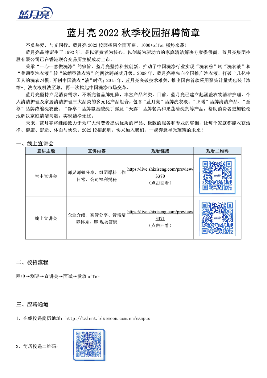 蓝月亮2022秋季校园招聘简章