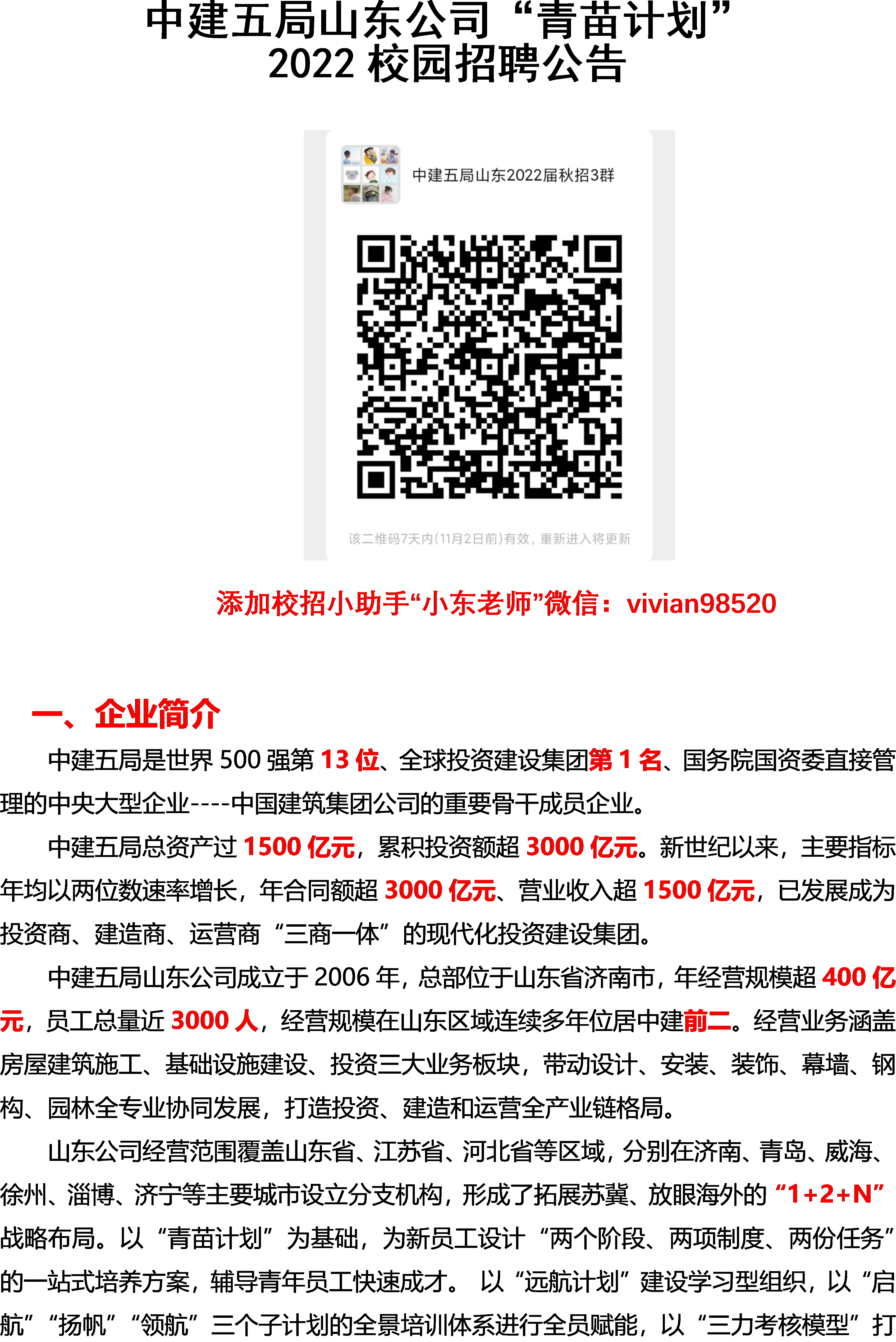 中建五局山东公司“青苗计划”2022校园招聘公告