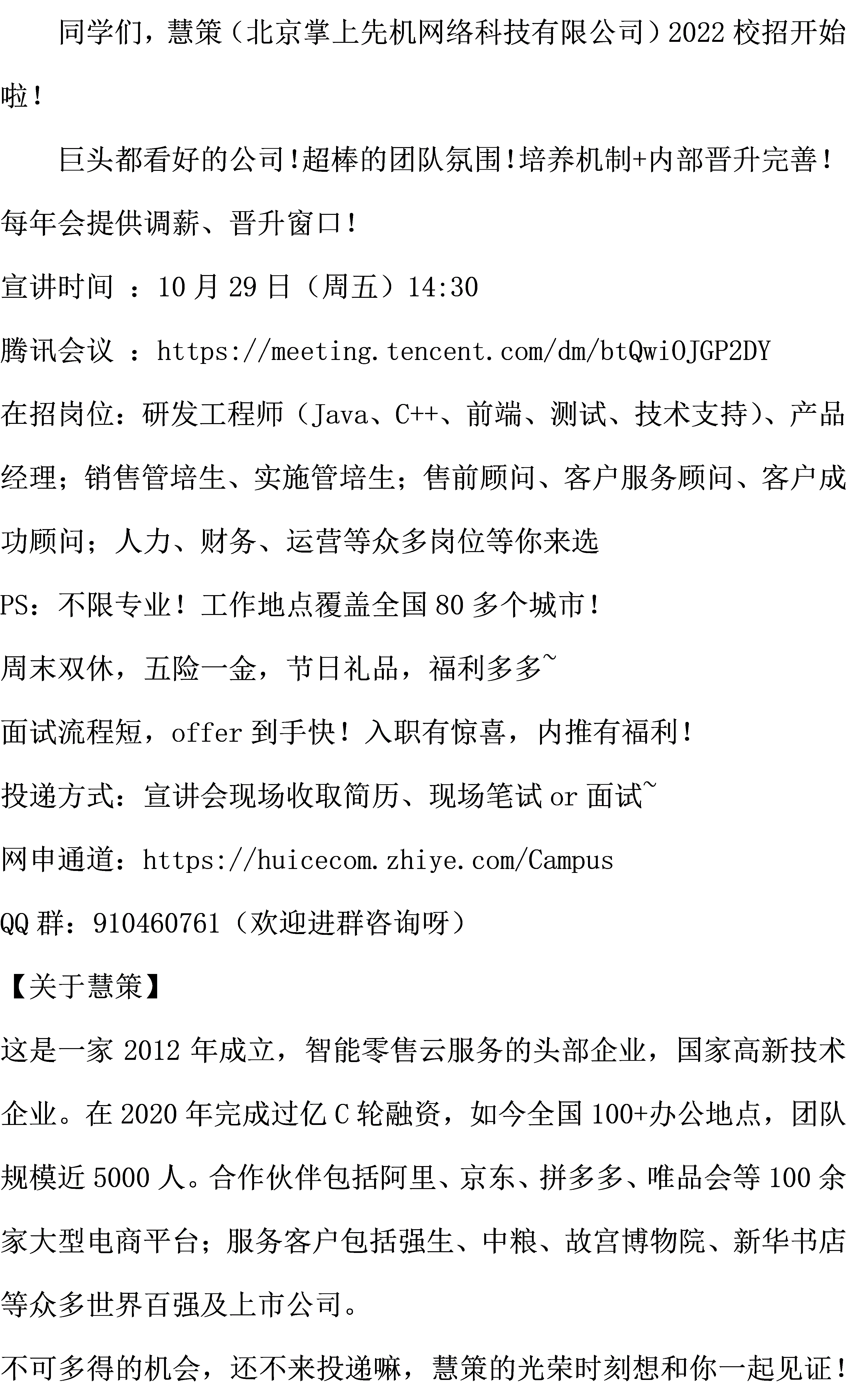 慧策2022校园招聘简章